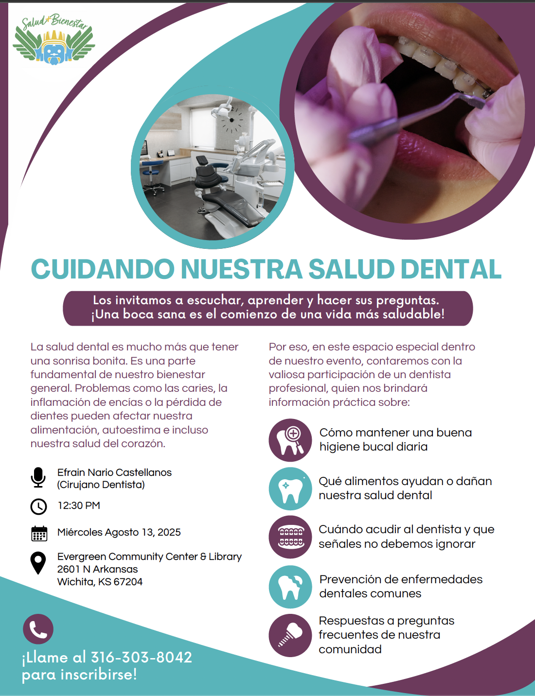 Solo llama al 316-303-8042 para registrarte.